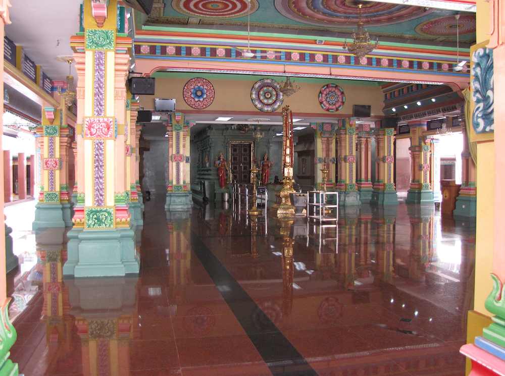 Built in the South Indian style, the temple’s 5-tiered gopuram (tower) rises dramatic 23 meters and is decorated with depictions of Hindu gods sculpted by artisans from southern India.