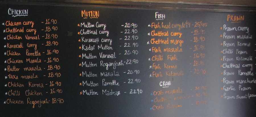 Tandoori Mahal Indian Restaurant menu items written on the wall