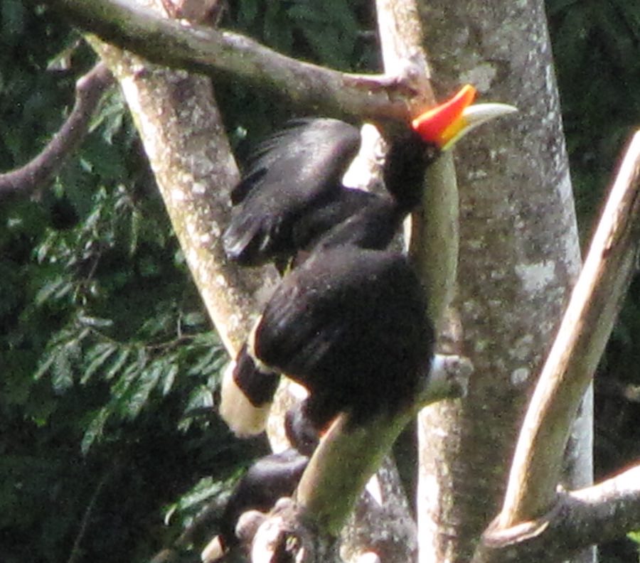I didn’t remember that Bornean Hornbills (Rhinoceros Hornbills) were huge and it was quite surprising how large they were. The Rhinoceros Hornbill grows to 90โ€“120 cm long and weighing 2โ€“3 kg. In captivity it can live for up to 90 years. It is the state bird of Sarawak and the National bird of Malaysia.