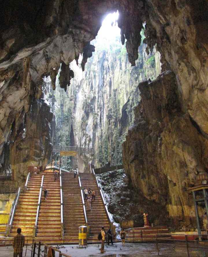 Batu caves is one of the most popular Hindu shrines outside India, dedicated to Lord Murugan. It is the focal point of Hindu festival of Thaipusam in Malaysia. To reach the caves you must climb 272 concrete steps up the limestone formation that make up this site.